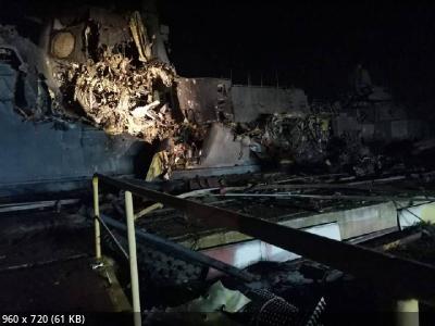 Прилёта не было - в небольшом здании, где был небольшой запас БК коротнула проводка, начался пожар.